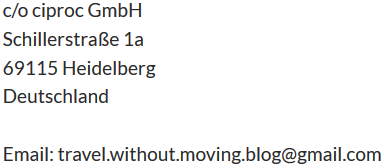 Bitte kontaktieren Sie mich für Post jeglicher Art vorab per Email (siehe unten), damit ich Ihnen meine Berliner Privatadresse mitteilen kann.